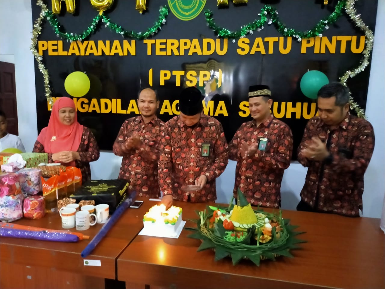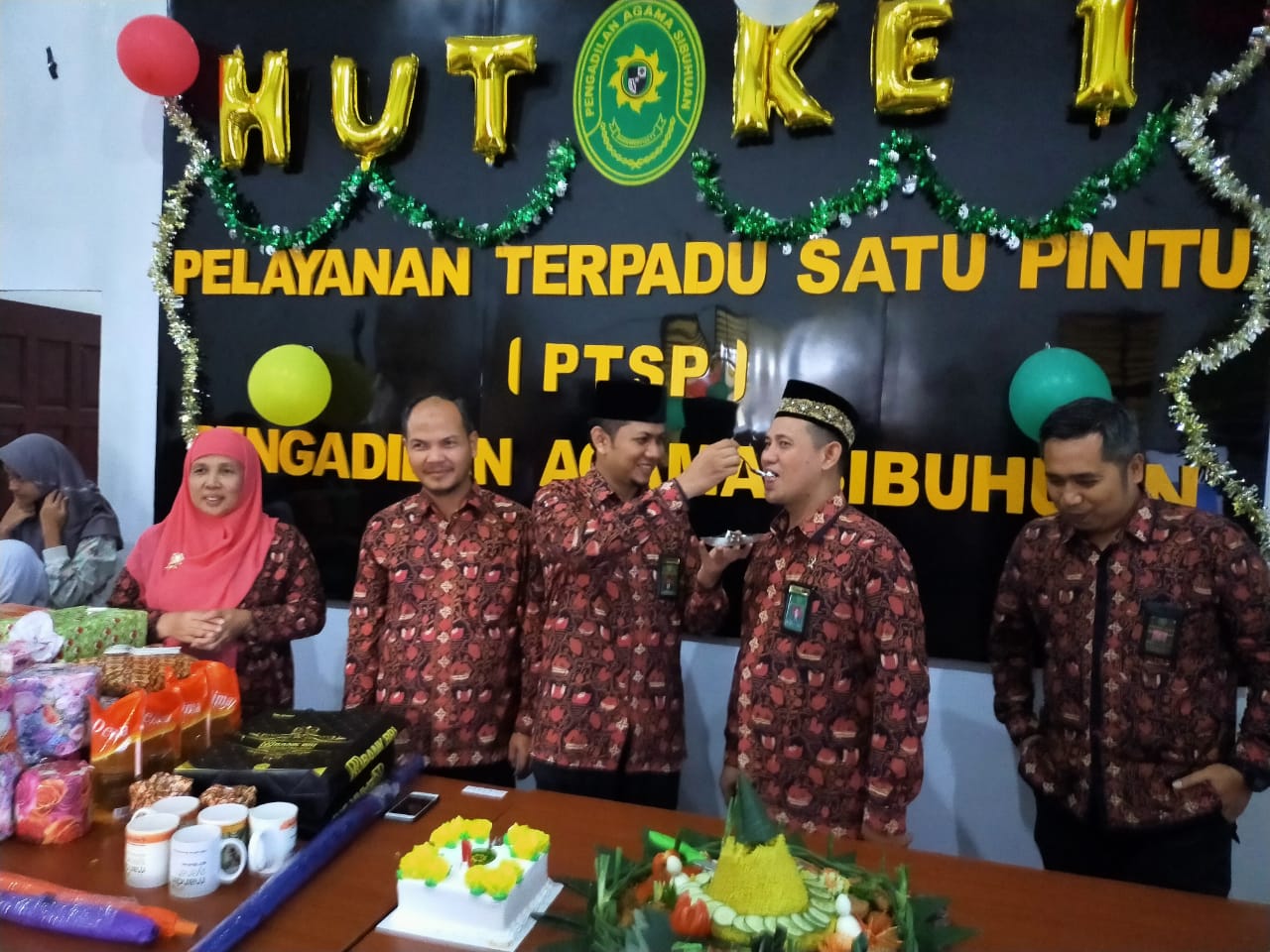 Untuk menikmati dan mensyukurinya, kamis tanggal 31 Oktober 2019 sekitar Pukul 14.00 WIB, bertempat di gedung Pengadilan Agama Sibuhuan, segenap pimpinan, para Hakim, pejabat struktural dan fungsional beserta karyawan-karyawati dan honorer Pengadilan Agama Sibuhuan mengadakan syukuran sederhana, pemotongan tumpeng serta do’a bersama.