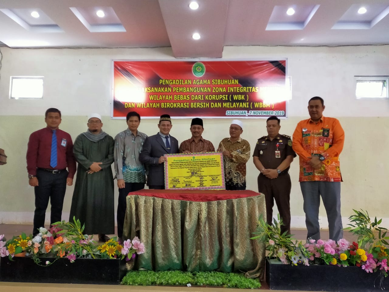 Ketua Pengadilan Agama Sibuhuan A.Syarkawi,S.Ag.,M.H beserta aparaturnya sukses melakukan Deklarasi Pencanangan Zona Integritas Menuju WBK dan WBBM, disaksikan oleh Bupati beserta Forkompimda Kabupaten Padang Lawas Kamis (07/11/2019). Bertempat di aula Hotel Syamsiah Sibuhuan, mengawali kegiatan A.Syarkawi,S.Ag.,M.H. memimpin seluruh hakim dan pegawai untuk mengikrarkan perjanjian tidak melakukan praktik korupsi, kolusi dan nepotisme serta patuh dan taat terhadap kode etik yang berlaku bagi Hakim, Panitera, Jurusita dan Pegawai.